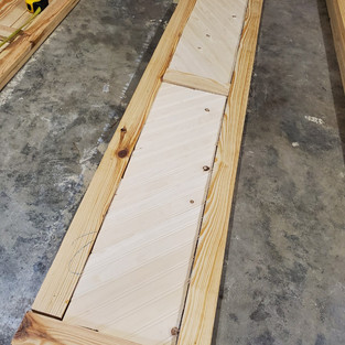 Step 2: To start this project I used my yellow pine board 1x6's to create the base. We used two full boards + a third that was cut/ripped length wise to the dimensions needed for our opening. These boards were glued together using Gorilla Wood Glue and Wood Clamps.