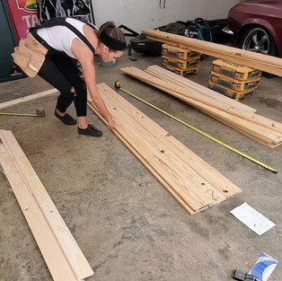 Once the frame was completed we moved on to the diagonal design. I had one leftover package (14 sqft) of Pine tongue & groove wall planks from a previous DIY & it worked out perfect!